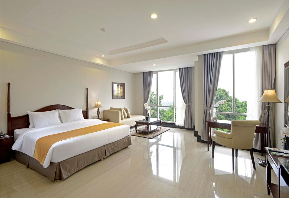 Located in Bogor, The Sahira Hotel Syariah is within a 5-minute drive of Batutulis and Bogor Botanical Garden. This family-friendly hotel is 1.9 mi (3.1 km) from Bogor Presidental Palace and 2.1 mi (3.4 km) from Botani Square.Take advantage of recreation opportunities such as an outdoor pool or take in the view from a terrace and a garden. Additional features at this hotel include complimentary wireless internet access, concierge services, and an arcade/game room.For lunch or dinner, stop by Rahisa, a restaurant that specializes in international cuisine. Dining is also available at the 2 coffee shops/cafes, and 24-hour room service is provided. Buffet breakfasts are available daily from 6:00 AM to 9:30 AM for a fee.Featured amenities include a business center, dry cleaning/laundry services, and a 24-hour front desk. Free self parking is available onsite.Make yourself at home in one of the 122 air-conditioned rooms featuring refrigerators and LED televisions. Complimentary wireless internet access keeps you connected, and cable programming is available for your entertainment. Private bathrooms with showers feature complimentary toiletries and bathrobes. Conveniences include safes and desks, and housekeeping is provided daily.